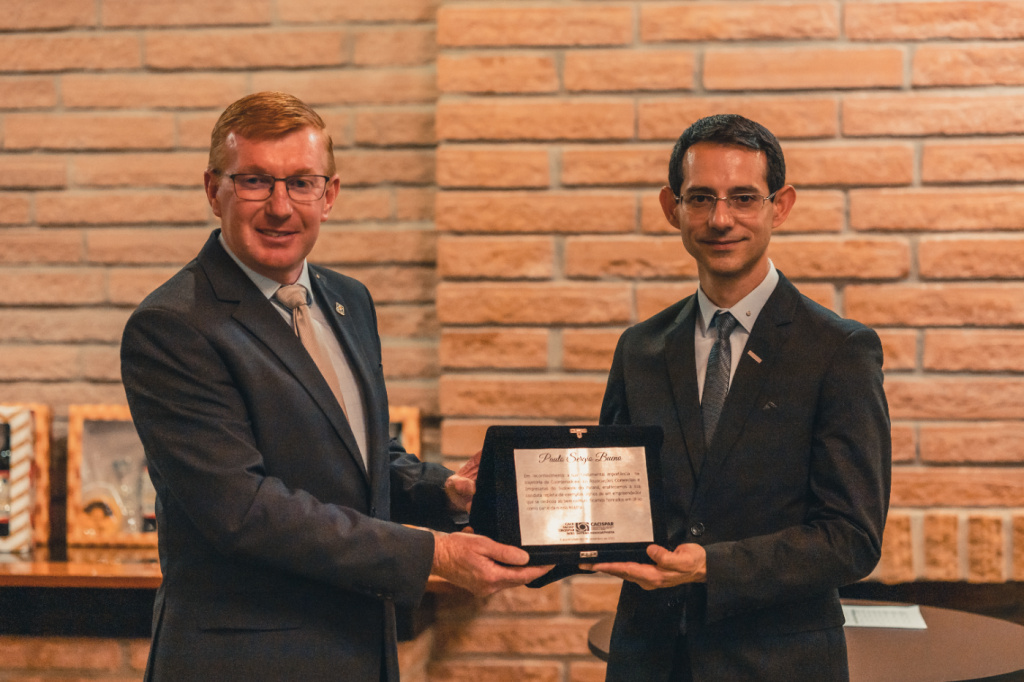 “Conduzir uma entidade como a Cacispar não é tarefa para uma pessoa, apenas. Agradeço a todos que nos acompanharam nesta jornada e também aos parceiros, como Faciap, Sebrae, Cresol, Sicoob, Sicredi, Supera Sistemas, BRDE, Fiep e Agência de Desenvolvimento. Carrego um sentimento de realização e de gratidão pelos conhecimentos adquiridos. Agora é a vez de Edilberto Minski conduzir e apontar a direção. O associativismo contribui para a prosperidade da região Sudoeste. Sucesso, Minski”, desejou Paulo Bueno.