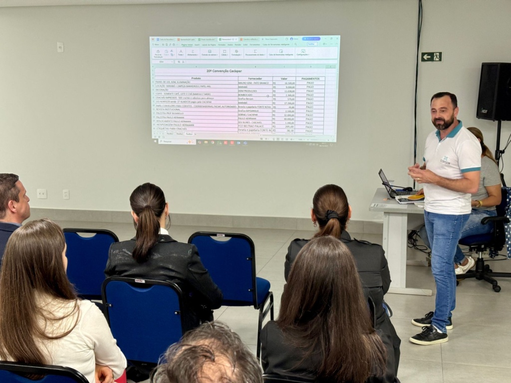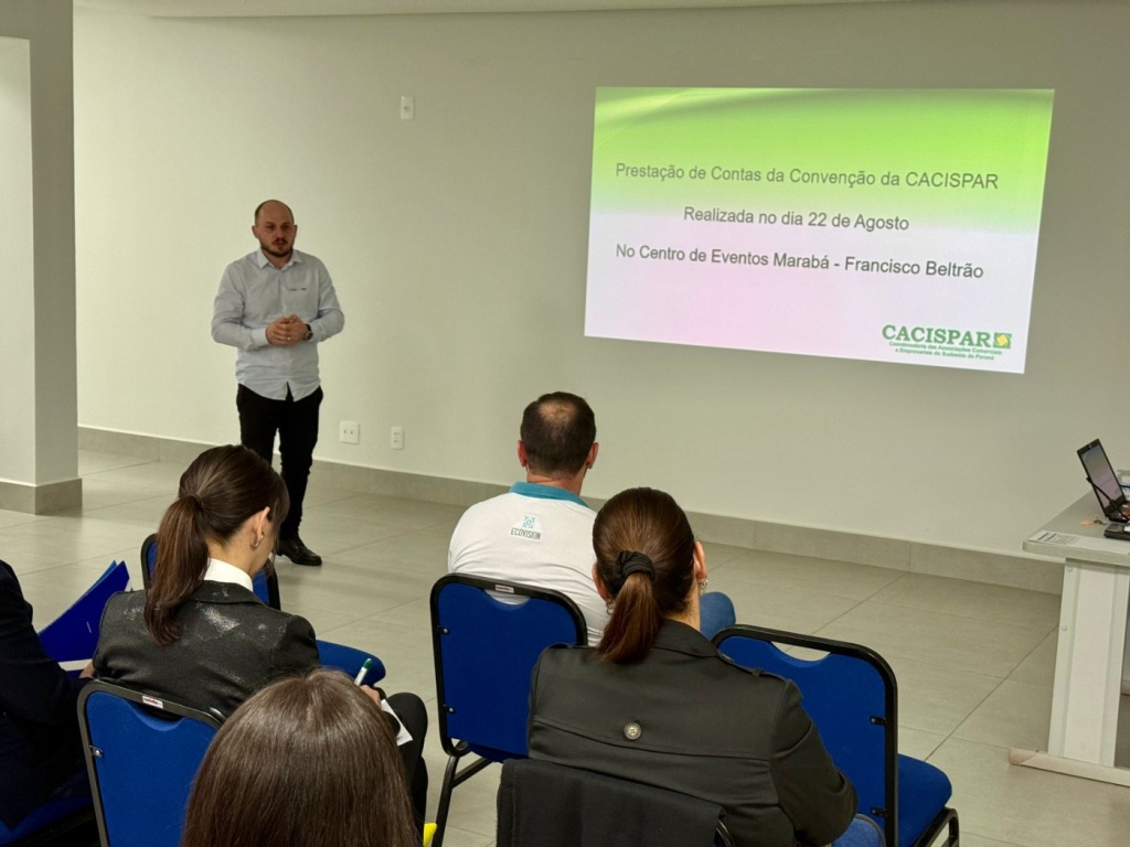 Um dos principais assuntos da pauta foi a prestação de contas da 22ª Convenção da Cacispar, realizada em agosto deste ano. A apresentação foi conduzida por Neodimar Moterle, diretor da Cacispar, e Vanessa Ribeiro, executiva da entidade.
