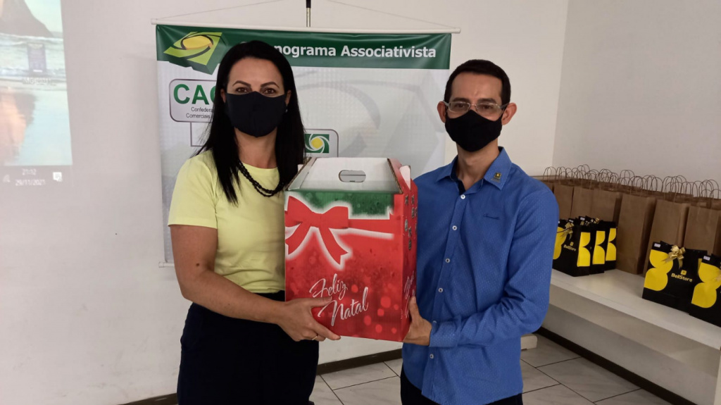 Para finalizar a reunião, as associações empresariais de Dois Vizinhos (ACEDV) e Pato Branco (ACEPB) foram reconhecidas pela Cacispar. As ACEs foram as mais participativas em todas as ações, reuniões e eventos promovidos pela Coordenadoria em 2021. Roberto Elias Silva, presidente da ACEPB, e Josiane Grando, vice-presidente da ACEDV, receberam os prêmios.