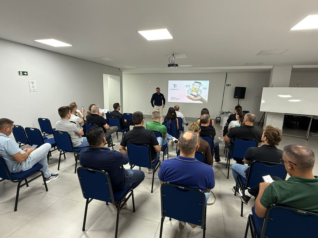 Um dos destaques da programação foi a participação de Rafael Racioppe, gerente-geral da Cash Berti, que apresentou a nova plataforma digital de pagamentos da empresa. A solução foi desenvolvida para trazer mais agilidade, segurança e modernização às transações realizadas pelos comerciantes da região.