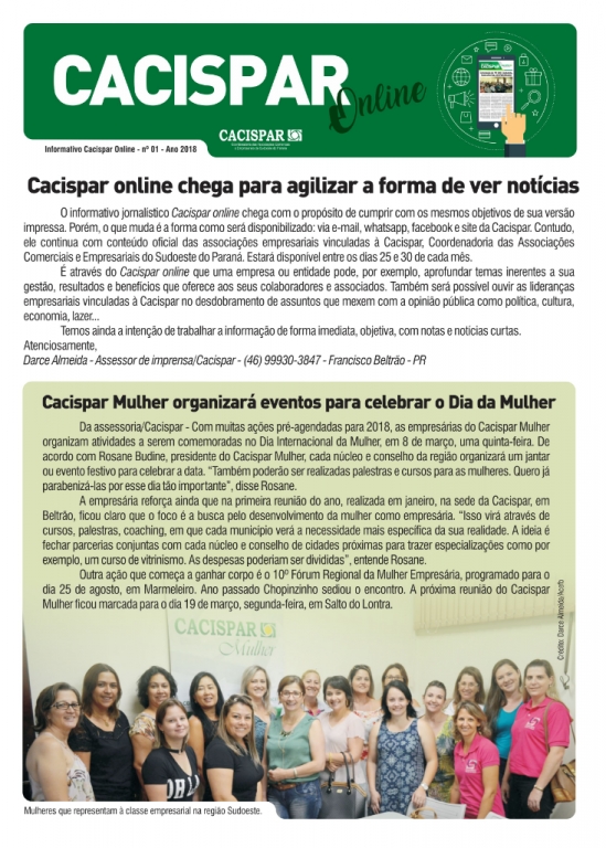 A Cacispar (Coordenadoria das Associações Comerciais e Empresariais do Sudoeste do Paraná)